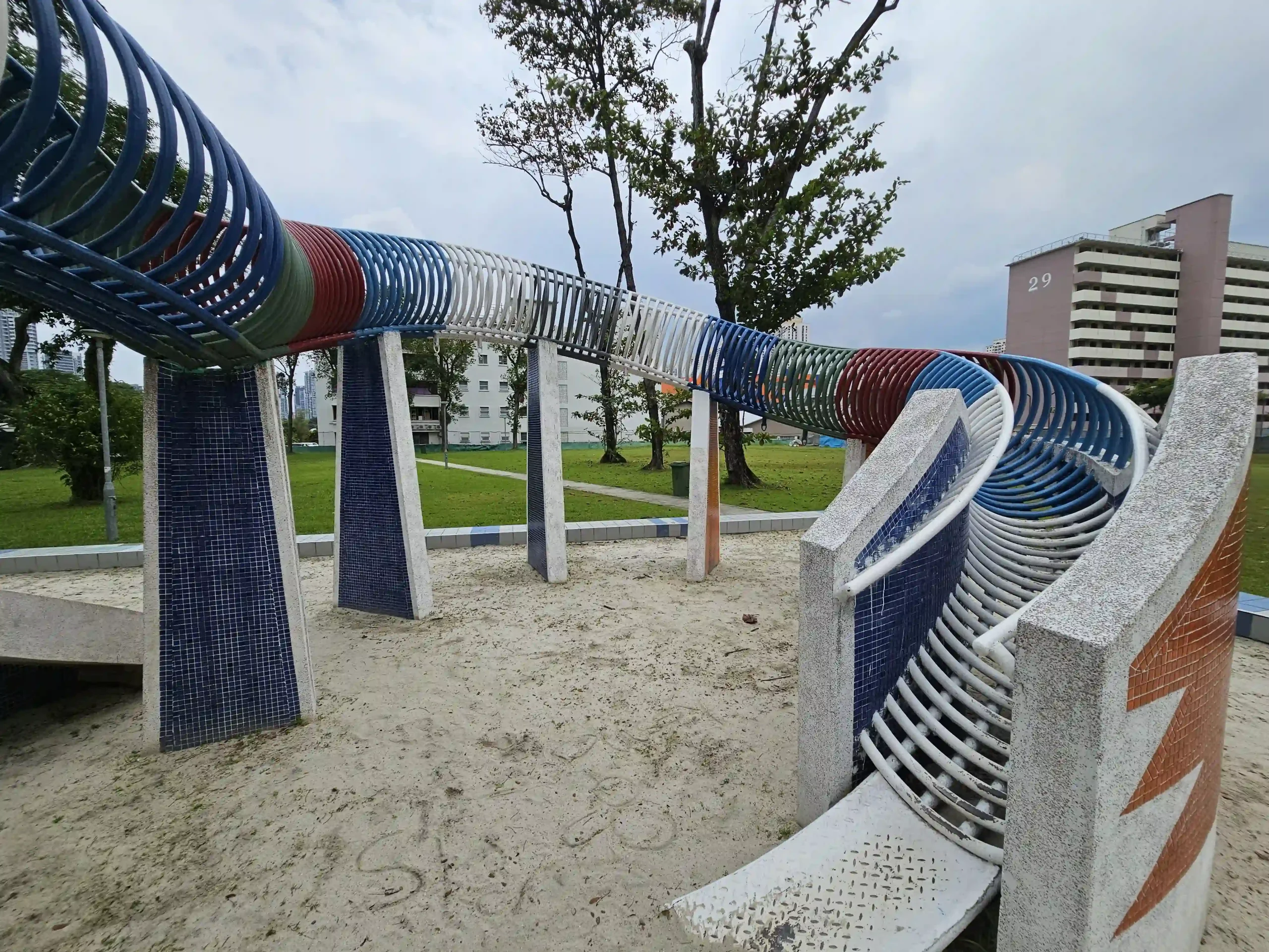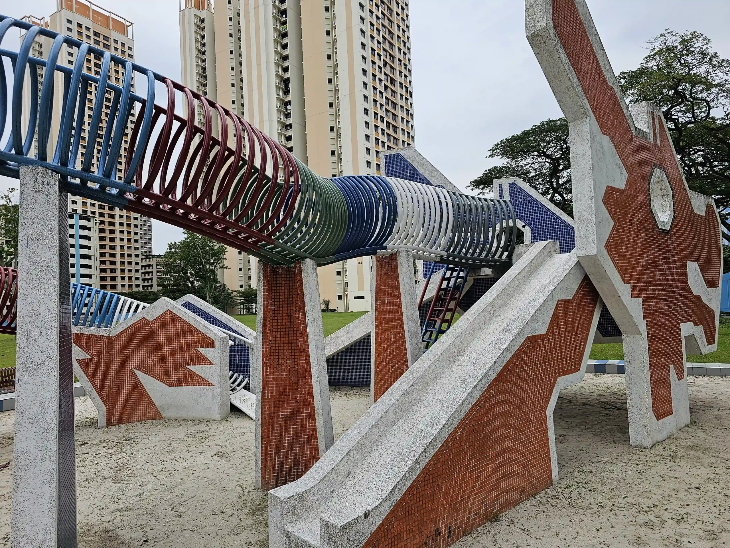 The playground features a dragon slide, climbing areas, and colorful play equipment, providing a fun and engaging space for children. Surrounded by open lawns and shaded areas, the Toa Payoh Dragon Playground is not only a place for play but also a cultural landmark that reflects Singapore’s unique urban and community history.