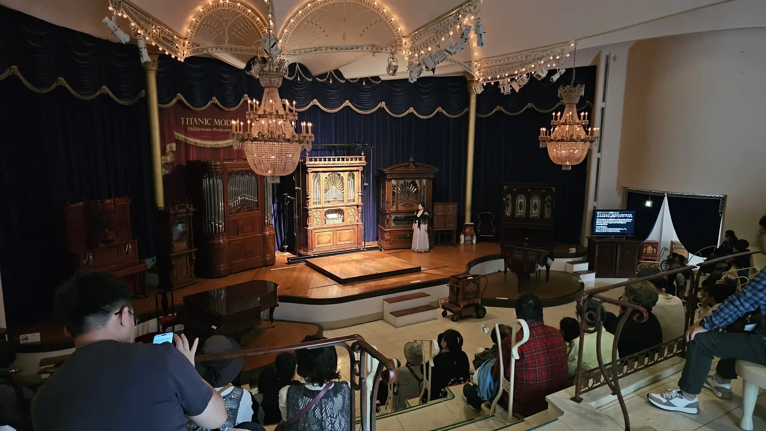 In the concert hall with automated instruments, there are several concerts a day, each time with a different automated instrument. Everyone listened to the soothing tones. There is also a model that was supposed to be loaded on the Titanic. If you have time, please enjoy it.