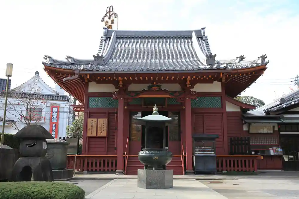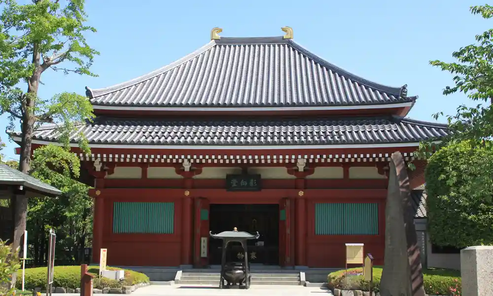 Built by the 3rd Tokugawa shogun, Tokugawa Iemitsu, and designated a national treasure, the Main Hall was destroyed in the Great Tokyo Air Raid on March 10, 1945. It was rebuilt in 1958 with donations from followers all over Japan. The immediately apparent characteristic of the Main Hall is its dramatically sloping roof that is quite tall compared to that of other temples. This hall is divided into the naijin (inner sanctum) and the gejin (outer sanctum). Senso-ji’s principal image, the Bodhisattva Kannon, sits in a miniature temple in the middle of the naijin.